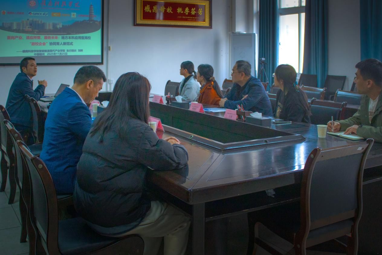 随后的座谈交流会上,智能制造现代产业公司产业服务部主任葛德亮详细介绍了公司的发展历程、专业设置、人才培养模式、团队力量以及科研与社会服务能力。全南县众谊越泰有限公司副总经理罗隆材随后介绍了企业的基本情况、主营业务、发展前景以及企业文化。他特别提到了企业在快速发展过程中对专业技术人才和管理人才的迫切需求,表达了与公司建立长期稳定人才合作关系的强烈意愿。